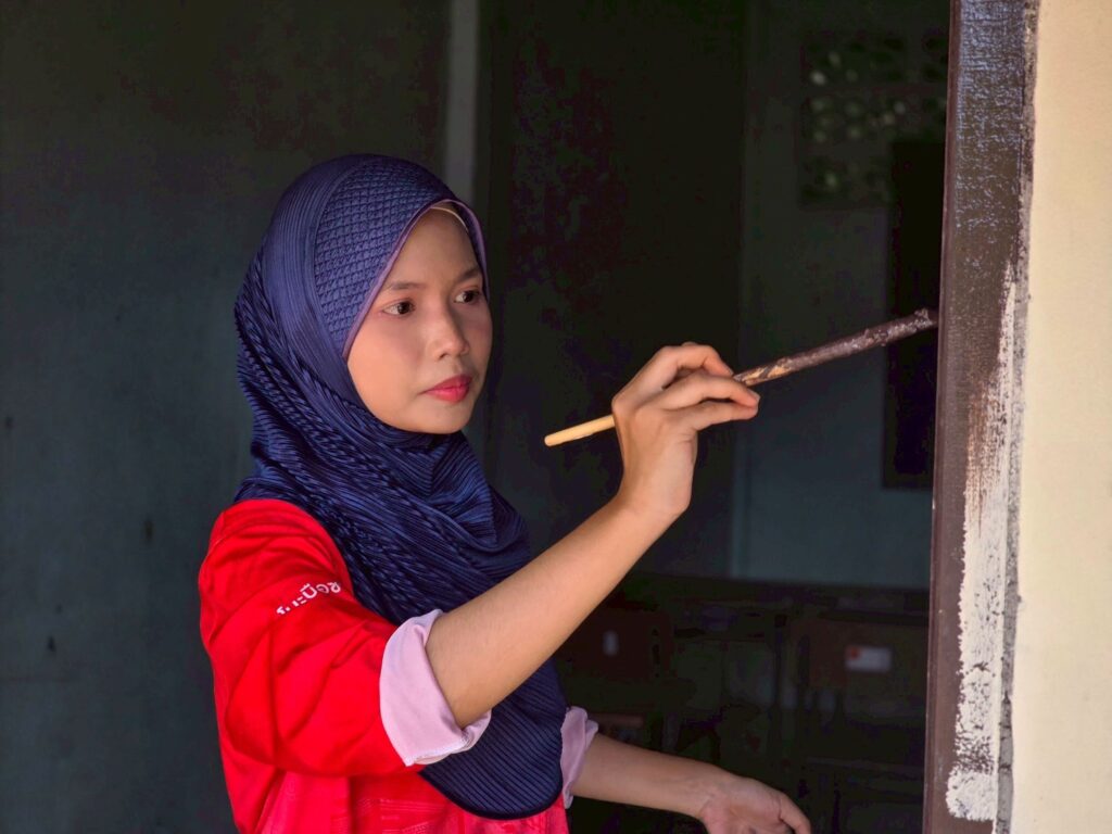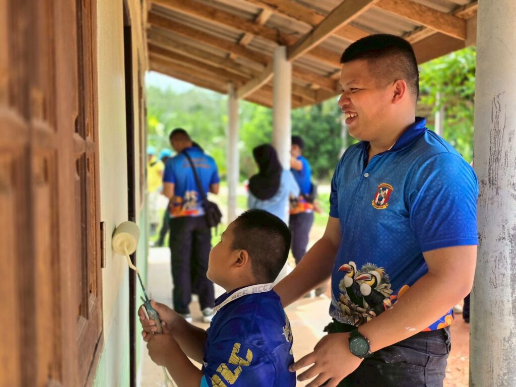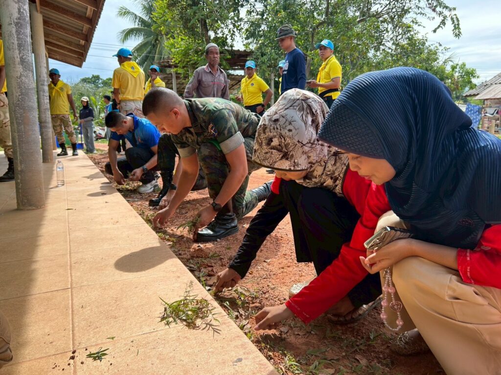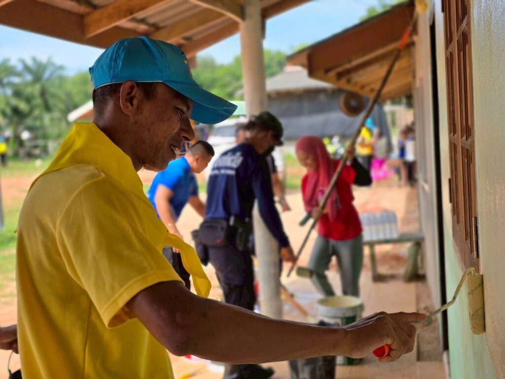 โดยร่วมกันทาสีอาคารเรียน ณ ศูนย์การศึกษาอิสลามประจำมัสยิดดารุลนัซรี บ้านบือแนกูเราะห์ (บ้านสาขาบ้านปูตะ) หมู่ที่ 3 ตำบลละหาร อำเภอยี่งอ จังหวัดนราธิวาส เพื่อพัฒนาตาดีกา เพื่อน้อง ส่งเสริมการศึกษาและมีส่วนร่วมของเยาวชนในการบำเพ็ญประโยชน์ต่อสังคม ในบริบทของการอยู่ร่วมกันในสังคมพหุวัฒนธรรม และเพื่อถวายพระราชกุศลในวันคล้ายวันสวรรคต พระบาทสมเด็จพระบรมชนกาธิเบศร มหาภูมิพลอดุลยเดชมหาราช บรมนาถบพิตร (ในหลวงรัชกาลที่ 9) ขับเคลื่อนฮูกุมปากัต (ธรรมนูญหมู่บ้าน 9 ดี) ในดีที่ 6 “สังคมอบอุ่น” และพร้อมสอดแทรก We are thai โชคดีที่เกิดเป็นไทย ผลการปฏิบัติ เป็นไปด้วยความเรียบร้อย หน่วยงานต่าง ๆ ให้ความร่วมมือในการดำเนินกิจกรรมเป็นอย่างดี และมีส่วนร่วมดำเนินกิจกรรมมากกว่า 70 คน นอกจากนี้กิจกรรมดังกล่าวยังเป็นการพบปะพัฒนาสัมพันธ์ กับบุคคลากร/นักเรียน และบูรณาการ กับหน่วยงานต่าง ๆ และขับเคลื่อนกิจกรรมในสถานศึกษา หมู่บ้านต่อไป