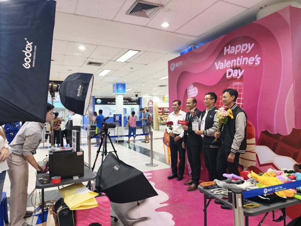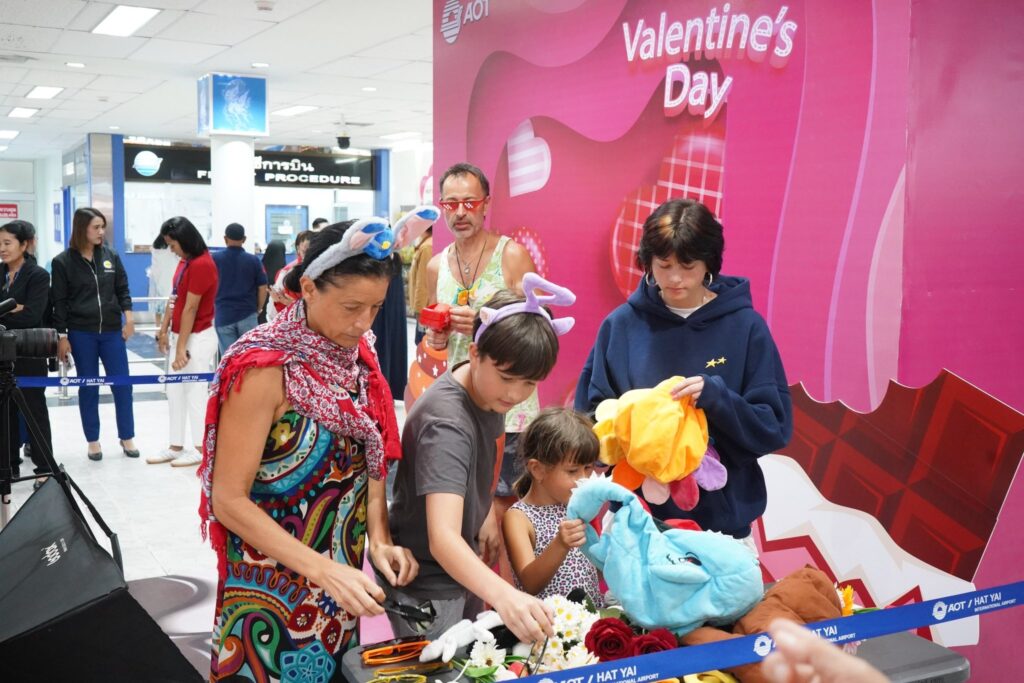 เมื่อวันที่ 13 กุมภาพันธ์ 2569 (เวลา 14.00 น.) นายกฤษฎา พุกะทรัพย์ ผู้อำนวยการท่าอากาศยานหาดใหญ่ (ผหญ.) เป็นประธานในการจัดกิจกรรม “วันวาเลนไทน์” ประจำปี 2569 เนื่องในวันวาเลนไทน์ ณ ห้องโถงอาคารผู้โดยสาร ทหญ. (ชั้น 1) บริเวณหน้าห้องพักผู้โดยสารขาเข้าภายในประเทศพร้อมด้วยผู้บริหาร พนักงานและลูกจ้างท่าอากาศยานหาดใหญ่ เข้าร่วมกิจกรรม โดยท่าอากาศยานหาดใหญ่ จัดให้มีการประดับตกแต่งพื้นที่เพื่อเป็นจุดถ่ายภาพและจัดกิจกรรมถ่ายรูปที่ระลึก Photo booth เป็นระลึกเนื่องในวันวาเลนไทน์ เพื่อให้ผู้โดยสารและผู้มาใช้บริการท่าอากาศยานหาดใหญ่ ได้สัมผัสถึงบรรยากาศของการเดินทางในช่วงวันวาเลนไทน์ และสร้างความประทับใจแก่ผู้มาใช้บริการ