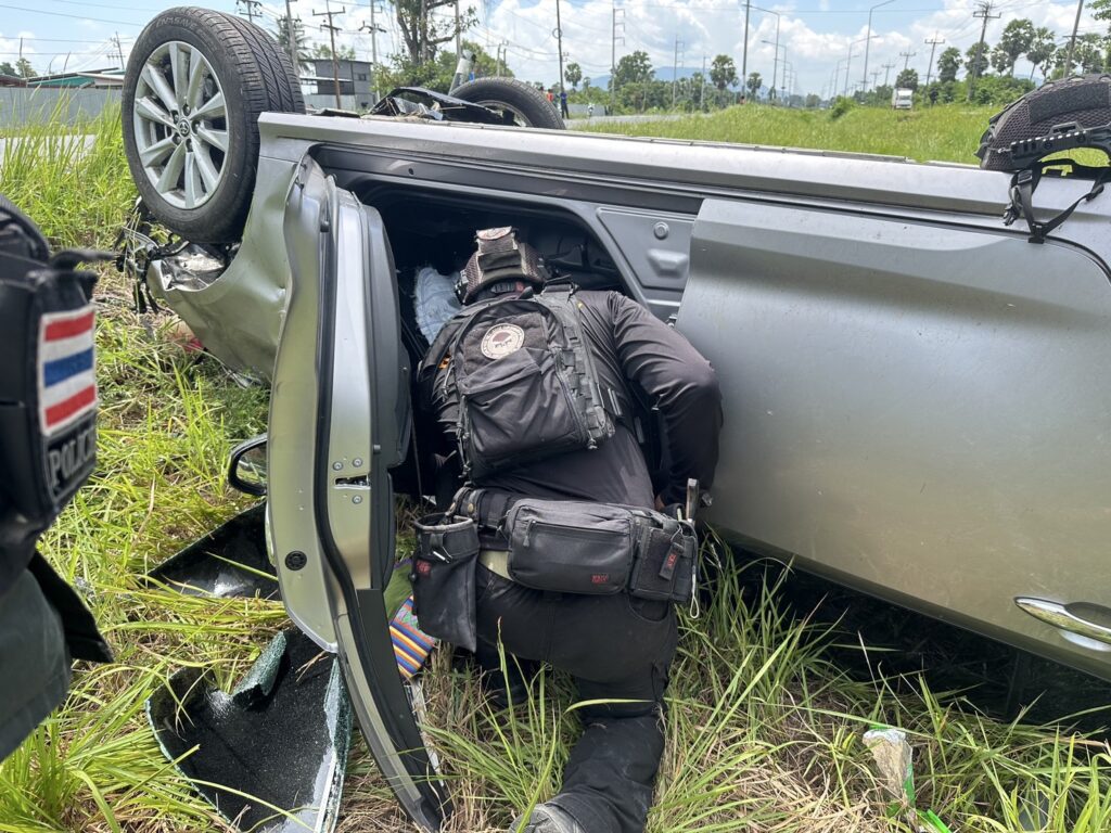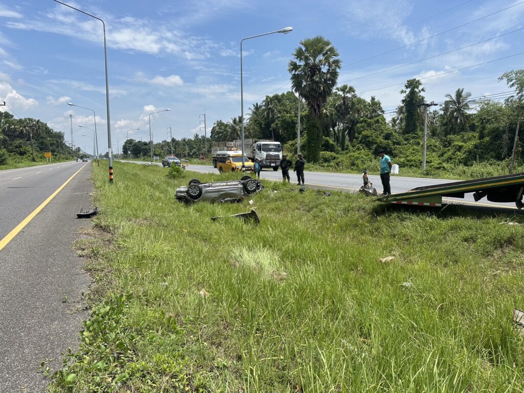 ในที่เกิดเหตุ พบรถยนต์เก๋งยี่ห้อโตโยต้า หมายเลขทะเบียน 5 ขล 5138 กรุงเทพมหานคร สภาพด้านหน้าพังเสียหายจากการชนเสาไฟฟ้า โดยจากการสอบถาม นางสาว นวพร ชัวชมเกตุ เจ้าของรถ ทราบว่าสาเหตุเกิดจากอาการหลับใน ทำให้เสียการควบคุมรถและพุ่งชนเสาไฟฟ้าลงข้างทาง เบื้องต้นมีผู้ได้รับบาดเจ็บเล็กน้อย จำนวน 2 ราย