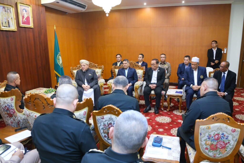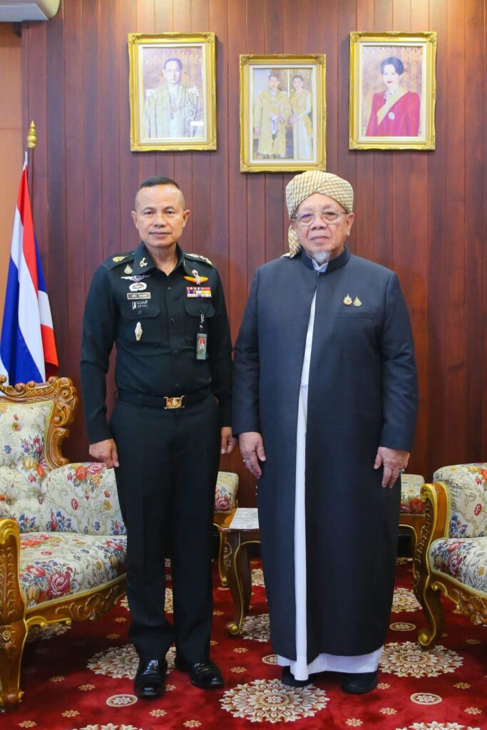 ที่สำนักงานจุฬาราชมนตรี เขตหนองจอก กรุงเทพมหานครฯ นายอรุณ บุญชม จุฬาราชมนตรี ให้การต้อนรับ พลโท นรธิป โพยนอก แม่ทัพภาคที่ 4 / ผู้อำนวยการรักษาความมั่นคงภายในภาค 4 พร้อมคณะ ซึ่งได้เข้าเยี่ยมคำนับในโอกาสเข้ารับตำแหน่ง เพื่อหารือแนวทางความร่วมมือในการแก้ไขปัญหาและพัฒนาพื้นที่จังหวัดชายแดนภาคใต้ให้เกิดสันติสุขอย่างยั่งยืน