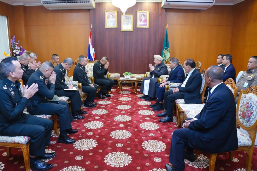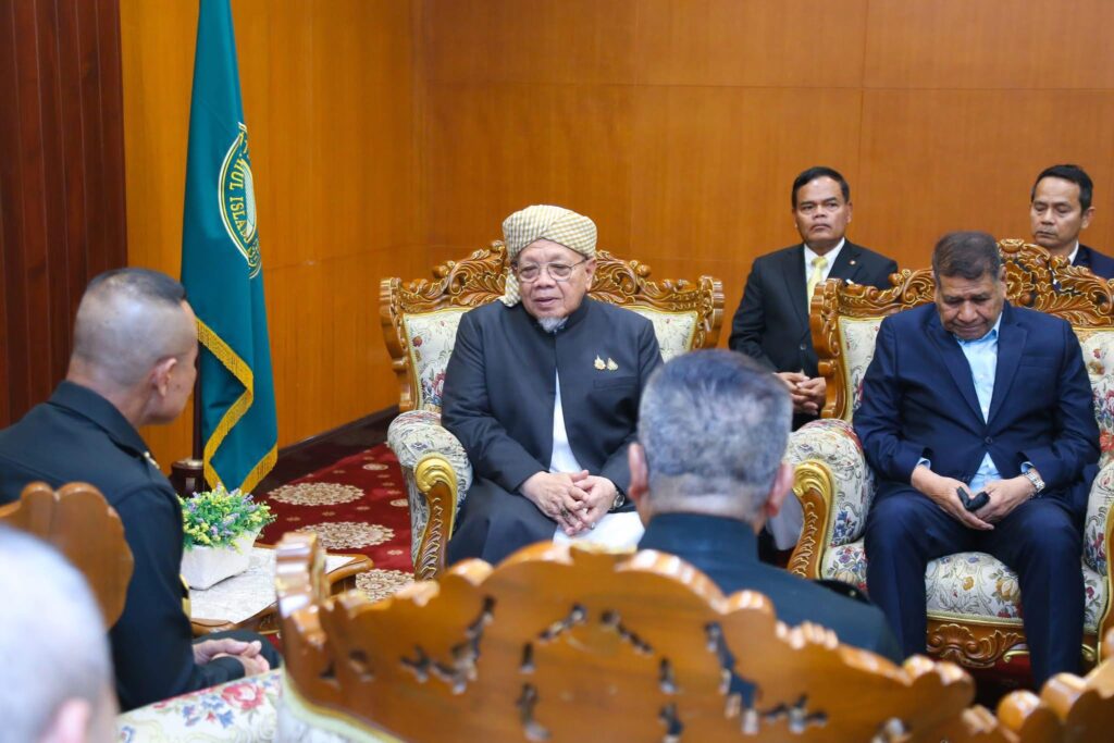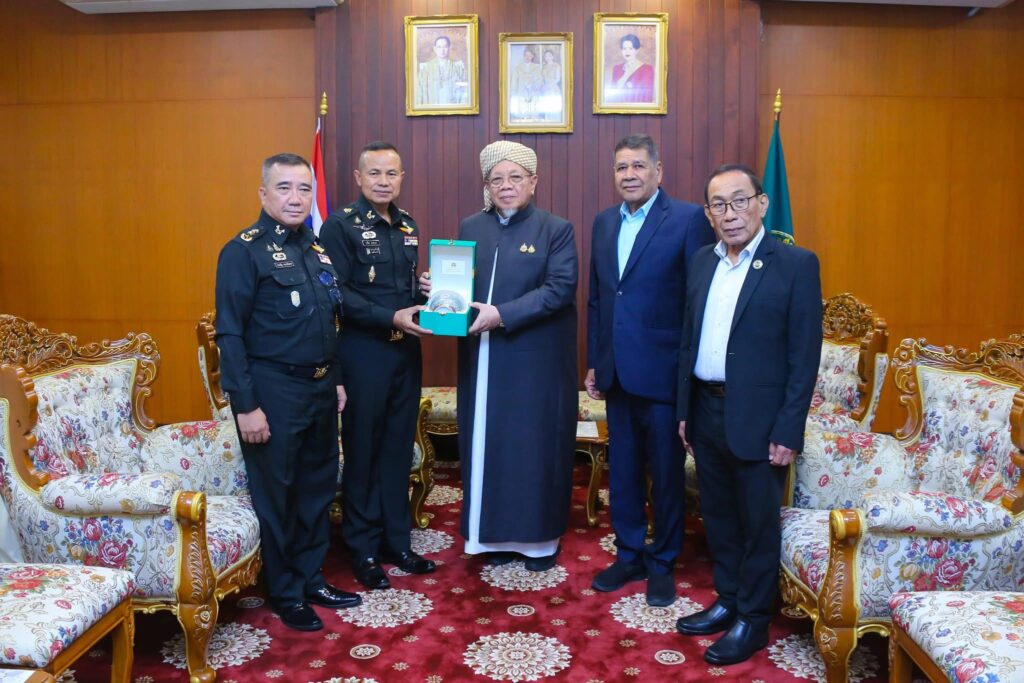 ที่สำนักงานจุฬาราชมนตรี เขตหนองจอก กรุงเทพมหานครฯ นายอรุณ บุญชม จุฬาราชมนตรี ให้การต้อนรับ พลโท นรธิป โพยนอก แม่ทัพภาคที่ 4 / ผู้อำนวยการรักษาความมั่นคงภายในภาค 4 พร้อมคณะ ซึ่งได้เข้าเยี่ยมคำนับในโอกาสเข้ารับตำแหน่ง เพื่อหารือแนวทางความร่วมมือในการแก้ไขปัญหาและพัฒนาพื้นที่จังหวัดชายแดนภาคใต้ให้เกิดสันติสุขอย่างยั่งยืน