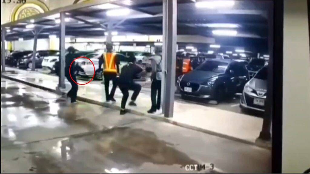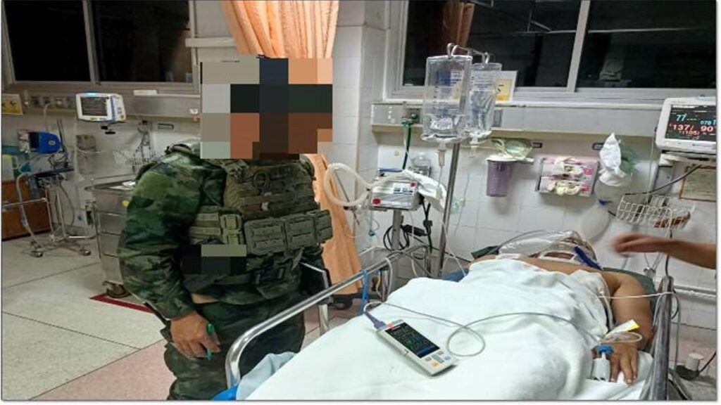 ⌛️ เวลา 18.47 น. สิบเอก บุริศวร์ ถูกยิงจากอาวุธปืนพกและอาวุธยาวขนาด 5.56 มม. ขณะพยายามนำอาวุธประจำกายจากรถยนต์ของตนเองเข้าขัดขวาง