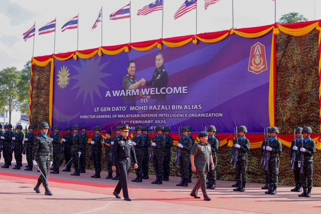 วันที่ 13 กุมภาพันธ์ 2568 ที่ กองบัญชาการกองทัพภาคที่ 4 ค่ายวชิราวุธ อำเภอเมือง จังหวัดนครศรีธรรมราช พลโท ไพศาล หนูสังข์ แม่ทัพภาคที่ 4 / ผู้อำนวยการรักษาความมั่นคงภายในภาค 4 ให้การต้อนรับ พลโท Dato’ Mohd Razali bin Alias เจ้ากรมการข่าวกองทัพบกมาเลเซีย พร้อมคณะ ในโอกาสเดินทางมาเยือนประเทศไทย เพื่อกระชับความสัมพันธ์และแลกเปลี่ยนข้อมูลด้านความมั่นคงระหว่างกองทัพทั้งสองประเทศ