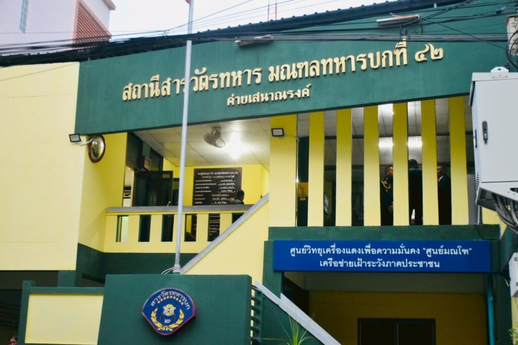 เมื่อวันที่ 14 พฤศจิกายน เวลา 1800น. ที่ ศูนย์วิทยุเครื่องแดงเพื่อความมั่นคง “ศูนย์มณโฑ” เครือข่ายเฝ้าระวังภาคประชาชน สถานีสารวัตรทหาร มณฑลทหารบกที่ 42 ค่ายเสนาณรงค์ อำเภอหาดใหญ่ จังหวัดสงขลา พลโท นรธิป โพยนอก แม่ทัพภาคที่ 4/ผู้อำนวยการรักษาความมั่นคงภายในภาค 4 พร้อมด้วยพลเอก พิเชษฐ์ วิสัยจร อดีตผู้ช่วยผู้บัญชาการทหารบก /อดีตแม่ทัพภาคที่ 4 เดินทางลงพื้นที่ พบปะพูดคุยกับกลุ่มสมาชิกเครือข่ายภาคประชาชนพี่น้องวิทยุเครื่องแดง (ศูนย์มณโฑ) เพื่อหารือแนวทางและมอบนโยบายการทำงาน เสริมสร้างประสิทธิภาพในการปฏิบัติภารกิจของเครือข่าย พร้อมรับฟังปัญหาข้อขัดข้องเพื่อนำมาปรับปรุงแก้ไขให้เหมาะสมเกิดประโยชน์ต่อกลุ่มสมาชิก และพี่น้องประชาชนโดยส่วนรวม โดยมี พันเอก ธนุตม์ พิศาลสิทธิวัฒน์ รองผู้บัญชาการมณฑลทหารบกที่ 42/ผู้บังคับหน่วยปฏิบัติการพิเศษร่วม พันเอก วาทยุทธ ชูช่วย รองผู้บัญชาการมณฑลทหารบกที่ 42 / รองผู้อำนวยการรักษาความมั่นคงภายในจังหวัดสงขลา (ฝ่ายทหาร) พันตำรวจเอก ภาคิน ณ ระนอง รองผู้บังคับการภูธรจังหวัดสงขลา พันเอกปริวิทย์ สุทธิโมกข์ เสนาธิการมณฑลทหารบกที่ 42 พันเอก กุดั่น ทองคำ รองเสนาธิการมณฑลทหารบกที่ 42 และคุณบงกช กาญจนแก้ว ประธานคณะกรรมการศูนย์วิทยุเครื่องแดงเพื่อความมั่นคง ตลอดส่วนที่เกี่ยวข้องร่วมให้การต้อนรับ