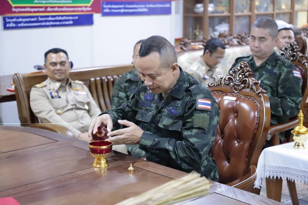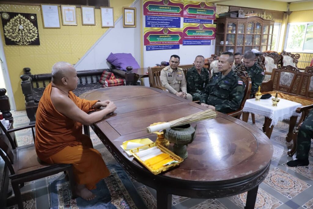 วันนี้ (11 พฤศจิกายน 2568) เวลา 08.30 น. ที่ วัดนาทวี อำเภอนาทวี จังหวัดสงขลา พลโท นรธิป โพยนอก แม่ทัพภาคที่ 4 / ผู้อำนวยการรักษาความมั่นคงภายในภาค 4 พร้อมคณะ เข้าเยี่ยมนมัสการ พระวชิรสุนทร (พระอาจารย์ภัตร อริโย) เจ้าอาวาสวัดนาทวี รองเจ้าคณะจังหวัดสงขลา หรือ พระอาจารย์ภัตร อริโย โดยได้ร่วมสนทนาธรรม สอบถามความเป็นอยู่ ก่อนถวายเครื่องไทยธรรมและจตุปัจจัย เพื่อเสริมความเป็นสิริมงคลในการดำเนินชีวิต และปฏิบัติภารกิจในพื้นที่จังหวัดชายแดนภาคใต้