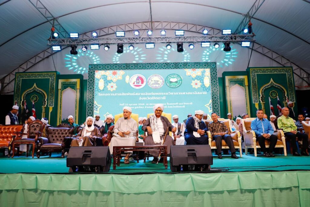 วันที่ (22 ตุลาคม 2568) เวลา 20.30 น. ที่ สนามกีฬาออมทอง อำเภอเมืองปัตตานี จังหวัดปัตตานี พลโท นรธิป โพยนอก แม่ทัพภาคที่ 4 / ผู้อำนวยการรักษาความมั่นคงภายในภาค 4 เป็นประธานเปิดงาน “FATONI BERSOLAWAT” และกล่าวต้อนรับ ท่านฮาบีบอุมัร มูฮัมหมัด ซาเล็ม บินฮาฟิส เชื้อสายท่านศาสดานบีมูฮัมหมัด ศาสดาแห่งศาสนาอิสลาม ลำดับที่ 33 ของโลกอิสลาม ผู้นำจิตวิญญาณมุสลิม อันดับ 1 ของโลกอิสลาม และเป็นผู้ทรงอิทธิพลของโลกอิสลาม ในด้านจิตวิญญาณและความศรัทธา พร้อมด้วยผู้นำศาสนาจากประเทศมาเลเซีย อินโดนีเซีย บรูไน สิงคโปร์ ท่านจุฬาราชมนตรี แห่งอาเจะห์ ประเทศอินโดนีเซีย และคณะผู้นำศาสนาจากอาเซียน โดยมี พลตรี กรกฎ ภู่โชติ รองผู้อำนวยการรักษาความมั่นคงภายในภาค 4 ส่วนหน้า , หัวหน้าส่วนราชการ , ผู้นำศาสนา , มุสลิมมะห์ และเยาวชนในพื้นที่ ร่วมให้การต้อนรับและเข้าร่วมงานกว่า 5,000 คน