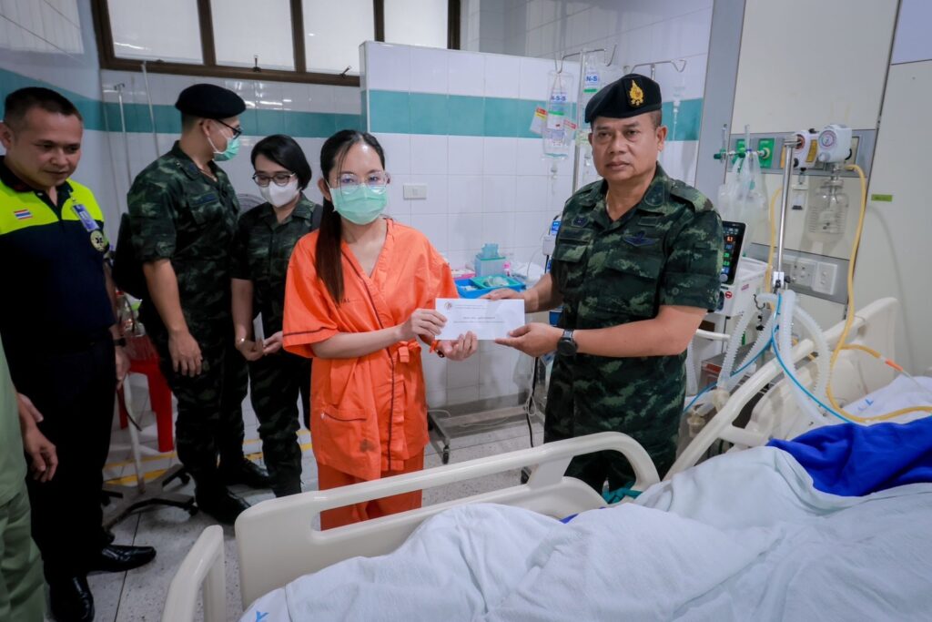 วันนี้ (12 มีนาคม 2568) เวลา 16.00 น. ที่ ตึกไฟไหม้น้ำร้อนลวก ชั้น 3 อาคารห้องผ่าตัด โรงพยาบาลยะลา พลโท ไพศาล หนูสังข์ แม่ทัพภาคที่ 4 / ผู้อำนวยการรักษาความมั่นคงภายในภาค 4 และคณะ เดินทางเยี่ยมให้กำลังใจเจ้าหน้าที่สมาชิกกองอาสารักษาดินแดนที่ได้รับบาดเจ็บจากเหตุการณ์กลุ่มผู้ก่อเหตุรุนแรง ลอบยิง – วางระเบิด หน้าที่ว่าการอำเภอสุไหงโก-ลก จังหวัดนราธิวาส ซึ่งทำการรักษาตัวอยู่ที่โรงพยาบาลยะลา 1 นาย คือ นายหมู่ใหญ่ กำธร วงค์นคร อายุ 44 ปี ตำแหน่ง ผู้บังคับหมู่รักษาความปลอดภัยที่ 1 อาการเบื้องต้นมีแผลไฟไหม้ที่บริเวณใบหน้าและแผ่นหลังรวม 30 เปอร์เซ็นของร่างกาย ขณะนี้รู้สึกตัวดี แต่ต้องใส่ท่อช่วยหายใจ เพื่อให้หายใจสะดวกขึ้น ในส่วนของอาการนั้นดีขึ้นตามลำดับ และอยู่ในความดูแลของแพทย์อย่างใกล้ชิด