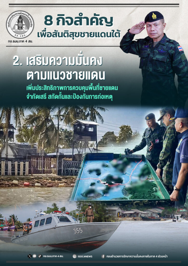 2. เสริมความมั่นคงตามแนวชายแดน : เพิ่มประสิทธิภาพควบคุมพื้นที่ สกัดกั้นและการป้องกันเหตุ