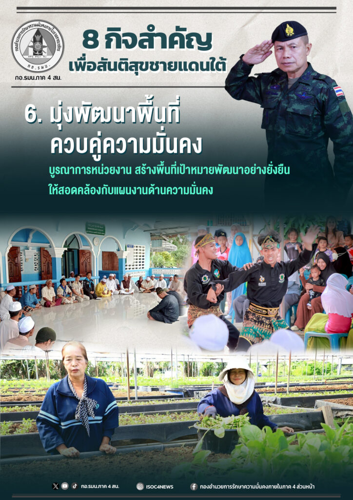 6. มุ่งพัฒนาควบคู่ความมั่นคง : บูรณาการหน่วยงาน สร้างพื้นที่เป้าหมายพัฒนาอย่างยั่งยืน ให้สอดคล้องกับแผนงาน ด้านความมั่นคง