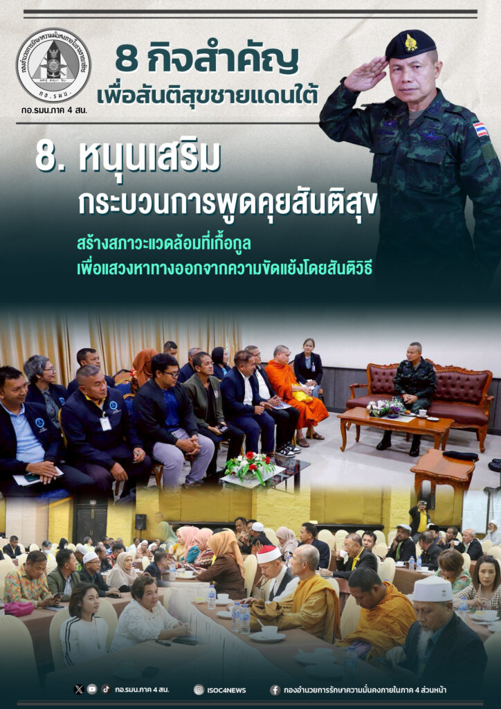8. หนุนเสริมกระบวนการพูดคุยสันติสุข : สร้างสภาวะแวดล้อมที่เกื้อกูล เพื่อแสวงหาทางออกจากความขัดแย้งโดยสันติวิธี