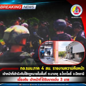 กอ.รมน.ภาค 4 สน. รายงานความคืบหน้า จนท.เข้าบังคับใช้กฎหมายในพื้นที่ ต.นาเกตุ อ.โคกโพธิ์ จ.ปัตตานี เบื้องต้น จนท.ได้รับบาดเจ็บ 3 นาย