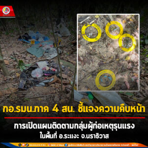 กอ.รมน.ภาค 4 สน. ชี้แจงความคืบหน้าการเปิดแผนติดตามกลุ่มผู้ก่อเหตุรุนแรงในพื้นที่ อ.ระแงะ จ.นราธิวาส
