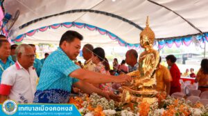 ทม.คอหงส์จัดโครงการสืบสานวัฒนธรรมประเพณีรดน้ำขอพรผู้สูงอายุ