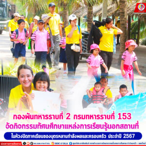 กองพันทหารราบที่ 2 กรมทหารราบที่ 153 จัดกิจกรรมทัศนศึกษาเเหล่งการเรียนรู้นอกสถานที่ในห้วงปิดภาคเรียนของบุตรหลานกำลังพลและครอบครัว ประจำปี 2567