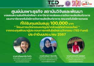 นศ.คณะเทคโนโลยีการเกษตร มรภ.สงขลา รับทุนพัฒนาผลิตภัณฑ์และแผนธุรกิจ 100,000 บาท โครงการยุววิสาหกิจเริ่มต้น “TED Youth Startup”