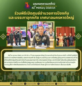มณฑลทหารบกที่ 42 ร่วมพิธีเปิดศูนย์อำนวยการป้องกันและบรรเทาอุทกภัย เทศบาลนครหาดใหญ่ เตรียมพร้อมรับมือสถานการณ์ในช่วงฤดูฝน เพื่อให้สามารถเข้าช่วยเหลือประชาชนได้อย่างทันท่วงที