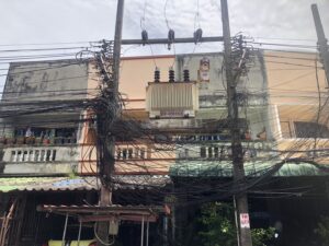 ชาวบ้านนอนผวาเสาไฟฟ้าหม้อแปลงขนาดใหญ่ เต็มไปด้วยสายสื่อสารลัดวงจรบ่อยครั้ง
