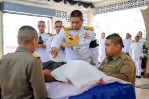 ไว้อาลัยแด่ดวงวิญญาณ และสดุดีวีรชนทหารกล้าอาสาสมัครทหารพราน ไมตรี บุดดา เสียชีวิตจากการปฏิบัติหน้าที่จวบจนวาระสุดท้ายของชีวิต พร้อมรดน้ำศพ ส่งศพ ผู้ล่วงลับกลับมาตุภูมิอย่างสมเกียรติ