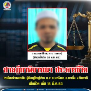 ศาลฎีกาพิจารณาคดี ประหารชีวิต กรณีคนร้ายลอบยิง ผู้ช่วยผู้ใหญ่บ้าน ม.2 ต.มะนังยง อ.ยะหริ่ง จ.ปัตตานี เสียชีวิต เมื่อ 18 มี.ค. 63