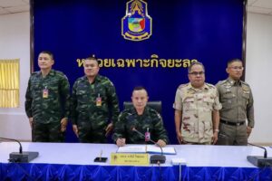 กอ.รมน.ภาค 4 สน. ตรวจเยี่ยม และให้กำลังใจหน่วยในพื้นที่จังหวัดนราธิวาส นำนโยบายกำชับให้กำลังพลปฏิบัติงาน ยึดหลักนโยบายผู้บังคับบัญชาในการรักษาความปลอดภัยและดูแลประชาชน
