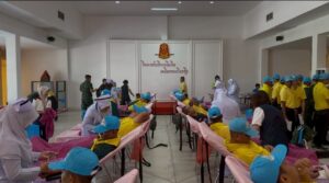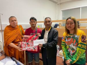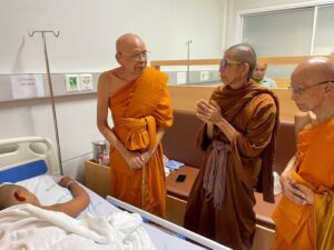 สมเด็จพระมหาวชิรมังคลาจารย์ เจ้าคณะใหญ่หนใต้ พร้อมที่ปรึกษา ผอ.รมน.ภาค 4 เยี่่ยมสามเณรบาดเจ็บจากเหตุกราดยิงที่สะบ้าย้อย