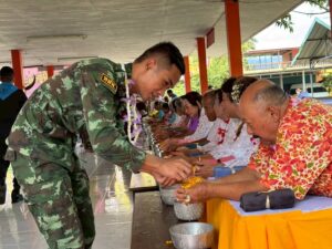 หน่วยเฉพาะกิจสันติสุข ร่วมสืบสานวัฒนธรรมไทย แสดงกตัญญูต่อผู้สูงวัยในงานวันผู้สูงอายุ ประจำปี 2568 ณ วัดโคกตา จ.นราธิวาส