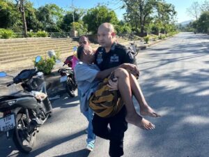 เจ้าหน้าที่ทหารพรานเข้าช่วยเหลือประชาชนประสบอุบัติเหตุบนถนน ขณะเดินทางร่วมกิจกรรมวันสงกรานต์
