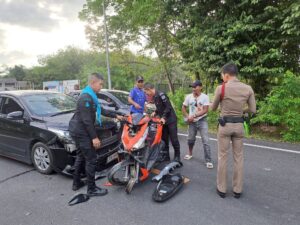 ทหารพราน 46 ช่วยเหลือประชาชนที่ประสบอุบัติเหตุ รถจักรยานยนต์ชนกับรถยนต์ พร้อมดูแลการจราจร