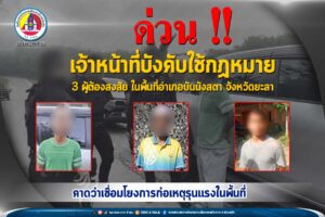 เจ้าหน้าที่บังคับใช้กฎหมาย 3 ผู้ต้องสงสัยในพื้นที่อำเภอบันนังสตา จังหวัดยะลา คาดว่าเชื่อมโยงการก่อเหตุรุนแรงในพื้นที่