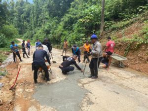 ทหารพราน 49 ร่วมปรับปรุงซ่อมแซมผิวถนนคอนกรีตที่ชำรุด ในพื้นที่ อ.ศรีสาคร จ.นราธิวาส