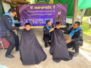 “เกศาสานใจ เชื่อมรักสานสัมพันธ์” ทหารพราน 42 บริการตัดผมให้กับนักเรียน ในพื้นที่ตำบลปิยามุมัง อำเภอยะหริ่ง จังหวัดปัตตานี