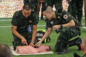 ศพชต.กอ.รมน. ภาค 4 สน. ให้ความรู้เรื่องการช่วยชีวิตด้วย CPR และการใช้เครื่องกระตุกหัวใจชนิดอัตโนมัติ AED เพื่อเสริมศักยภาพด้านการปฐมพยาบาลและการช่วยชีวิตขั้นพื้นฐานแก่กำลังพล-ประชาชน