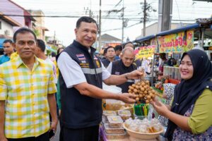นายกสาครลงพื้นที่พบปะพูดคุยกับพ่อค้า-แม่ค้าที่จำหน่ายสินค้าช่วงเดือนรอมฎอน