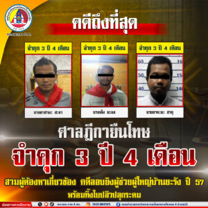 ศาลฎีกายืนโทษจำคุก 3 ปี 4 เดือน สามผู้ต้องหาเกี่ยวข้อง คดีลอบยิงผู้ช่วยผู้ใหญ่บ้านยะรัง ปี 57 พร้อมทิ้งใบปลิวปลุกระดม