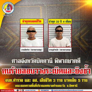 ศาลปัตตานี พิพากษาคดี คนร้ายลอบวางระเบิดและยิงซ้ำ จนท.ตำรวจ และ อส. เสียชีวิต 3 ราย บาดเจ็บ 5 ราย ขณะออกตรวจพื้นที่บริเวณเทศบาลตำบลยะรัง จ.ปัตตานี