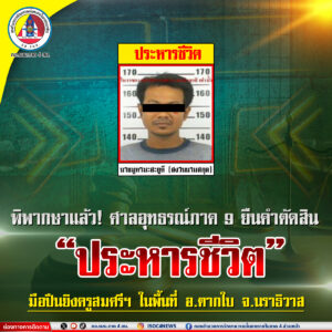 พิพากษาแล้ว! ศาลอุทธรณ์ภาค 9 ยืนคำตัดสิน “ประหารชีวิต” มือปืนยิงครูสมศรีฯ ในพื้นที่ อ.ตากใบ จ.นราธิวาส