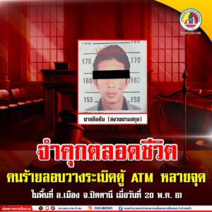 จำคุกตลอดชีวิต คนร้ายลอบวางระเบิดตู้ ATM หลายจุดในพื้นที่ อ.เมือง จ.ปัตตานี เมื่อวันที่ 20 พ.ค. 61