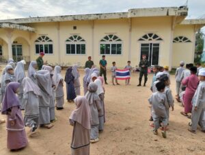 หน่วยเฉพาะกิจสันติสุข ลงพื้นที่ดำเนินกิจกรรมเสาธง 5 นาที สร้างความเข้าใจเกี่ยวกับ “ความเป็นมาและความหมายของธงไตรรงค์”