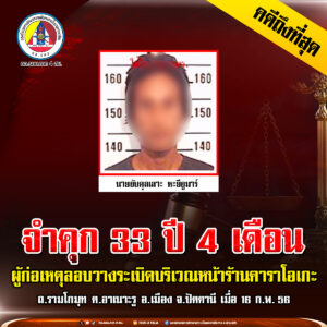 “จำคุก 33 ปี 4 เดือน” ผู้ก่อเหตุลอบวางระเบิดบริเวณหน้าร้านคาราโอเกะ ถ.รามโกมุท ต.อาเนาะรู อ.เมือง จ.ปัตตานี เมื่อ 16 ก.พ. 56