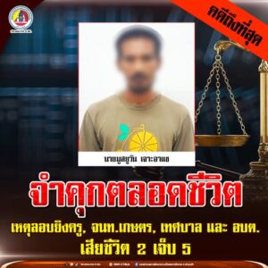 จำคุกตลอดชีวิต เหตุลอบยิงครู, จนท.เกษตร, เทศบาล และ อบต. เสียชีวิต 2 เจ็บ 5
