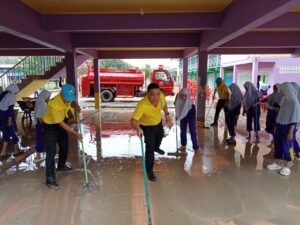 จิตอาสาทหารพรานที่ 46 ร่วมแรง ร่วมใจ ทำความสะอาดโรงเรียนบ้านนาดา อ.รือเสาะ จ.นราธิวาส หลังน้ำลด เพื่อให้น้อง ๆ ได้กลับเรียนได้ตามปกติในเร็ววัน