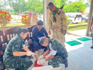 ทหารพรานที่ 47 ร่วมกับ เหล่ากาชาดจังหวัดยะลามอบถุงยังชีพช่วยเหลือประชาชนที่ได้รับผลกระทบจากอุทกภัยในพื้นที่ ต.ปุโรง อ.กรงปินัง จ.ยะลา เพื่อบรรเทาความเดือดร้อนในเบื้องต้น