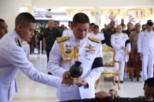 พระบาทสมเด็จพระเจ้าอยู่หัวทรงพระกรุณาโปรดเกล้าโปรดกระหม่อม พระราชทานน้ำหลวงอาบศพ สดุดีวีรชนทหารกล้า สละชีพเพื่อชาติ ก่อนส่งศพกลับภูมิลำเนา จ.บุรีรัมย์