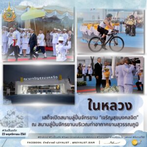 ในหลวง เสด็จเปิดสนามลู่ปั่นจักรยาน ‘เจริญสุขมงคลจิต’ บริเวณท่าอากาศยานสุวรรณภูมิ