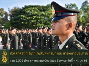 กองทัพบกเปิดสมัครนักเรียนนายสิบทหารบก และนายทหารประทวน กว่า 2,326 อัตรา ผ่านระบบ One Stop Service 2568 ตั้งแต่วันนี้ – 4 ม.ค. 68