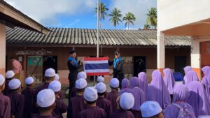 ทหารพรานที่ 49 ร่วมกิจกรรมเสาธง 5 นาที เสริมสร้างความรักชาติ ศาสนา พระมหากษัตริย์ ให้กับนักเรียนศูนย์การศึกษาอิสลามประจำมัสยิดมูฮำมาดียะห์อัลอัสลามียะห์ อ.จะแนะ จ.นราธิวาส