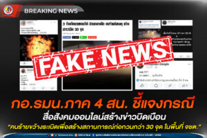 กอ.รมน.ภาค 4 สน. ชี้แจงกรณีสื่อสังคมออนไลน์สร้างข่าวบิดเบือน “คนร้ายขว้างระเบิดเพื่อสร้างสถานการณ์ก่อกวนกว่า 30 จุด ในพื้นที่ จชต.”