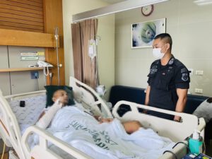 รอง ผบ.ฉก.ทพ.49 เยี่ยมให้กำลังใจและติดตามอาการของกำลังพลที่ได้รับบาดเจ็บจากเหตุการณ์ความรุนแรงในพื้นที่ จชต.