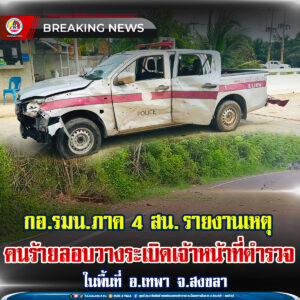 กอ.รมน.ภาค 4 สน. รายงานเหตุคนร้ายลอบวางระเบิดเจ้าหน้าที่ตำรวจ ในพื้นที่ อ.เทพา จ.สงขลา