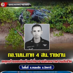 กอ.รมน.ภาค 4 สน. รายงาน เหตุคนร้ายลอบยิงเจ้าหน้าที่อาสาสมัครทหารพรานเสียชีวิต ในพื้นที่ อ.หนองจิก จ.ปัตตานี